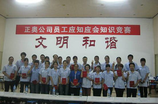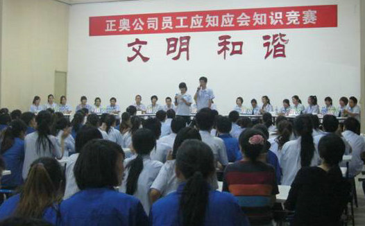 .為了促進公司全體一線員工學習、掌握崗位應(yīng)知應(yīng)會知識和基本的崗位技能、行為規(guī)范,提升一線員工的綜合技能素質(zhì),正奧公司工會組織生產(chǎn)一線員工,在發(fā)放知識卡片、進行全員書面測試的基礎(chǔ)上,選拔優(yōu)秀選手于9月14日晚開展了“應(yīng)知應(yīng)會知識競賽”活動,本次競賽根據(jù)生產(chǎn)工序共選撥7支參賽隊,每隊由3人組成。通過必答、搶答、觀眾互動等形式,根據(jù)各隊答題得分情況最終產(chǎn)生一、二、三等獎,公司領(lǐng)導為獲獎選手們頒發(fā)榮譽證書和獎金。