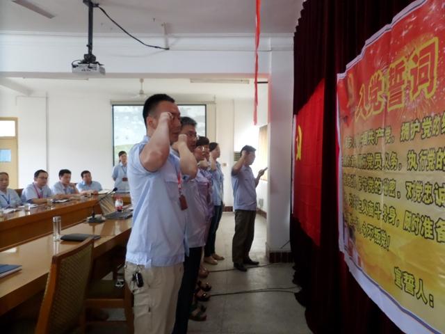 伴著雄渾的國歌聲,公司所有黨員干部全體起立,向黨旗致禮。隨后公司機關(guān)黨支部書記王子星宣讀了2013年預(yù)備黨員轉(zhuǎn)正以及接收2014年新預(yù)備黨員的決定。7名新預(yù)備黨員在黨委副書記李應(yīng)濤的領(lǐng)誓下,進行了莊嚴的宣誓。隨著新黨員錚錚誓詞的落地和預(yù)備黨員代表發(fā)言完畢后。公司還特別邀請到十堰黨校黨務(wù)處李教授宣講以“踐行核心價值觀、發(fā)揮黨員先進性”為主題的黨課。