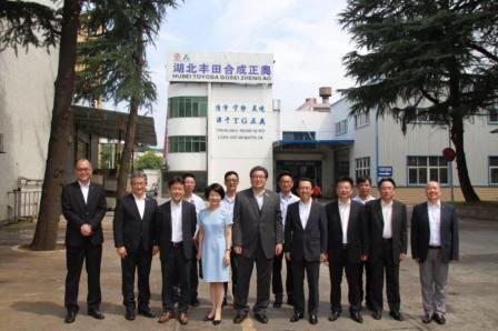 豐田合成株式會(huì)社于1949成立于日本愛知縣,是日本豐田汽車公司投資的一家全球零部件企業(yè),公司主要生產(chǎn)經(jīng)營(yíng)汽車密封產(chǎn)品、內(nèi)外裝飾部件、機(jī)能部件、安全系統(tǒng)產(chǎn)品等,在全球17個(gè)國(guó)家/地區(qū)擁有65家集團(tuán)公司,擁有3萬8千多名員工。其中在中國(guó)有13家,分布在天津、廣東、福建、張家港、十堰等地。其中十堰豐田合成正奧于2019年1月與湖北正奧集團(tuán)合資成立。此行是合資后宮崎社長(zhǎng)首次到訪豐田合成正奧。